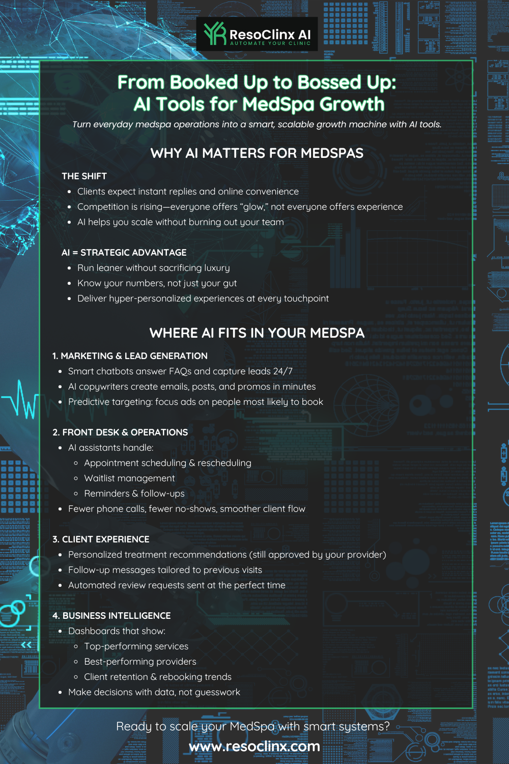 Discover how AI-powered systems can simplify bookings, personalize client journeys, and unlock new growth opportunities for modern medspas, all while keeping your team focused on delivering exceptional results.