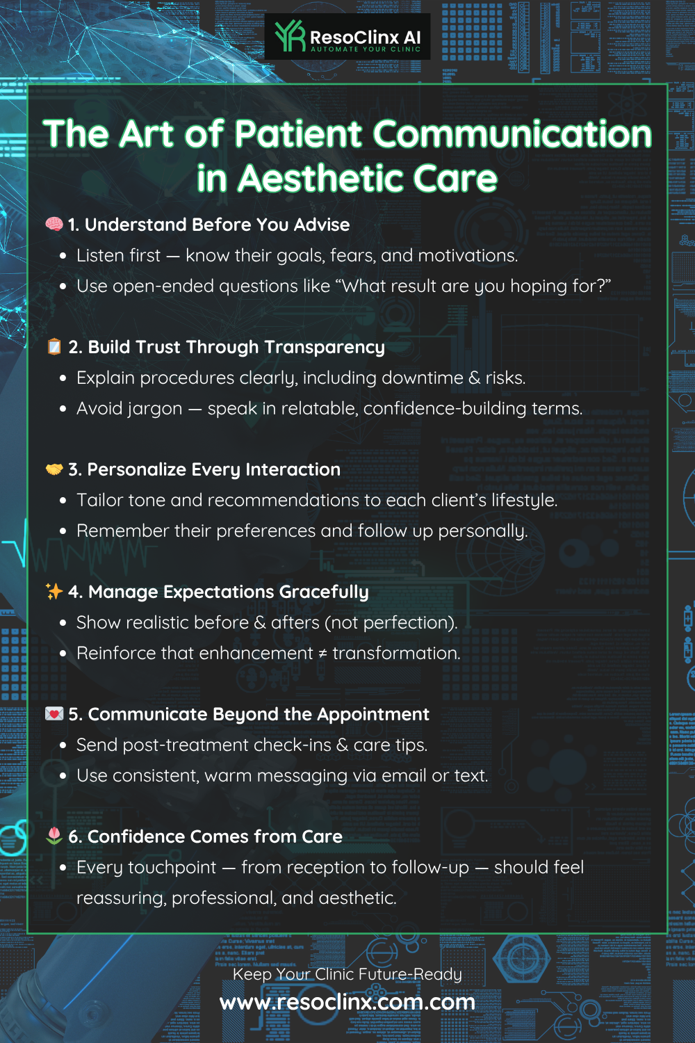 This allows your human staff to focus on what truly requires a personal touch: delivering outstanding aesthetic care and client service.