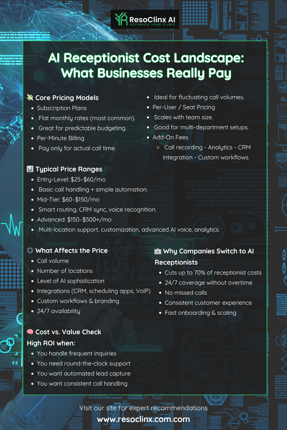 Introducing an AI receptionist to your aesthetic clinic can be a practical way to streamline operations, reduce administrative workload, and improve patient communication. But how much does an AI receptionist actually cost, and what determines the price?