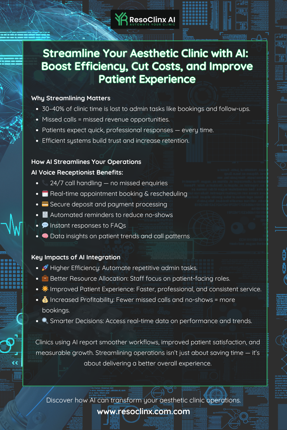 With fewer missed calls, faster bookings, and smoother operations, your team can focus on delivering exceptional results and an outstanding patient experience. Embracing this technology helps your clinic run more efficiently and continue to grow with confidence.