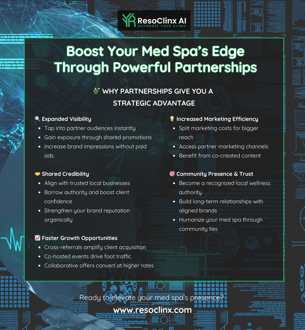 A quick look at how strategic partnerships help med spas expand visibility, strengthen credibility, and accelerate client growth through collaborative opportunities.