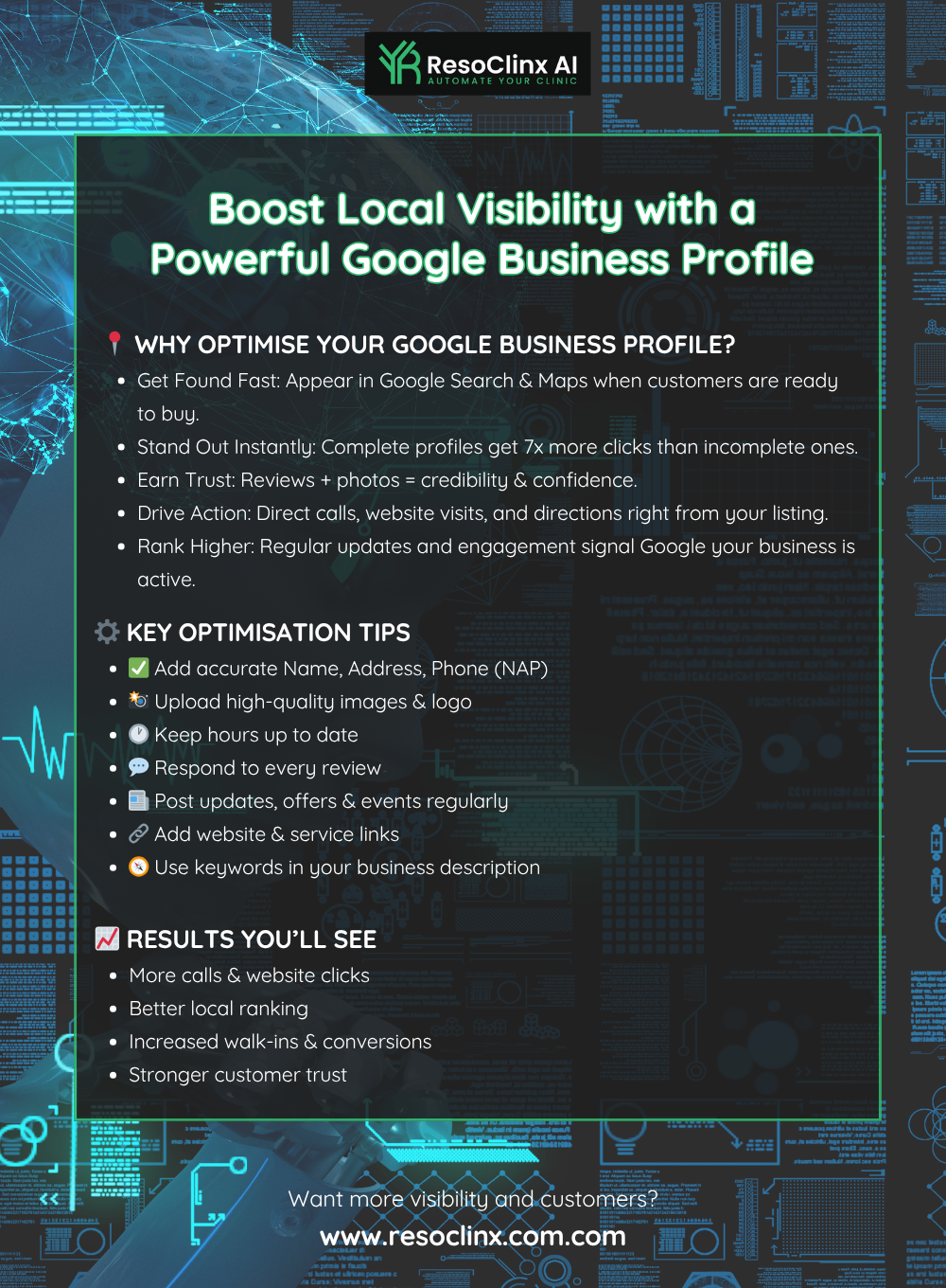 Think of your Google Business Profile like your clinic’s digital front door. When people search for services like yours nearby, this profile is often the first thing they see. A well-optimised profile helps potential clients find you easily, learn about your services, and decide if you’re the right fit for them. It’s a free way to get noticed by local customers who are actively looking for what you offer.