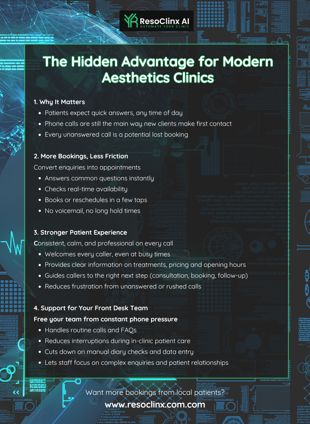 Running an aesthetics clinic means juggling a lot of moving parts, and the phone lines can often feel like the busiest hub. Patients call with questions, to book appointments, or to change existing ones.