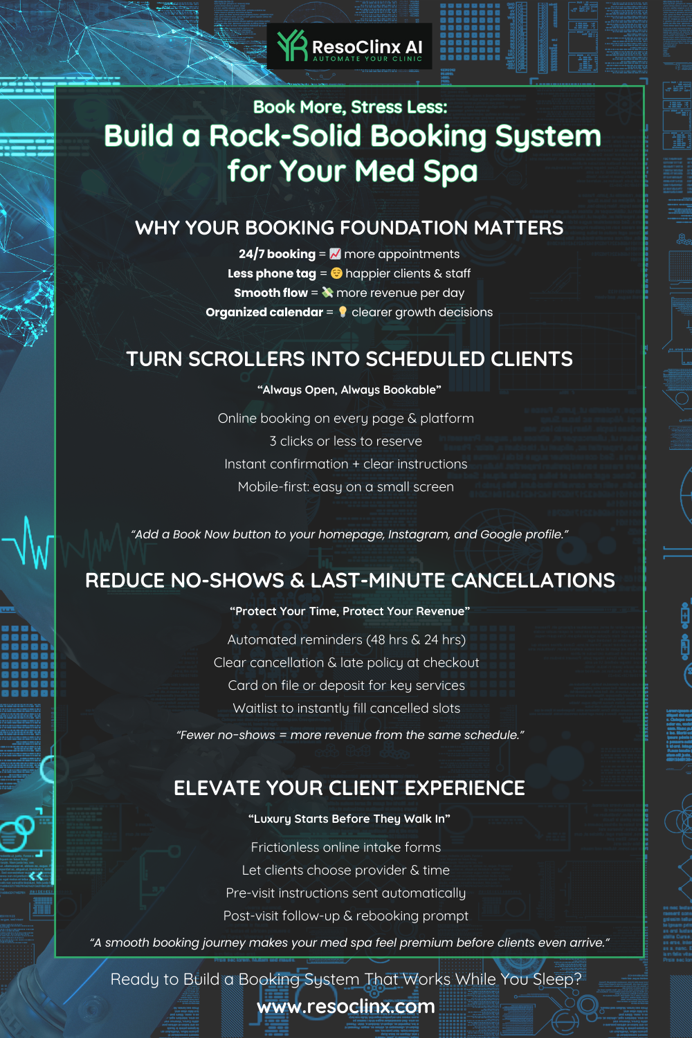 Getting your med spa’s booking system right from the start is essential. It’s not only about filling appointment slots — it’s about building a smooth operational foundation that supports your team and reassures your clients. Think of it as the backbone of your business; if it’s strong and organised, everything else becomes easier.