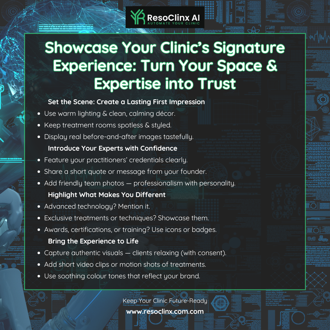 This is a key part of effective aesthetic clinic marketing — clients aren’t just buying treatments; they’re choosing an experience and a trusted professional.