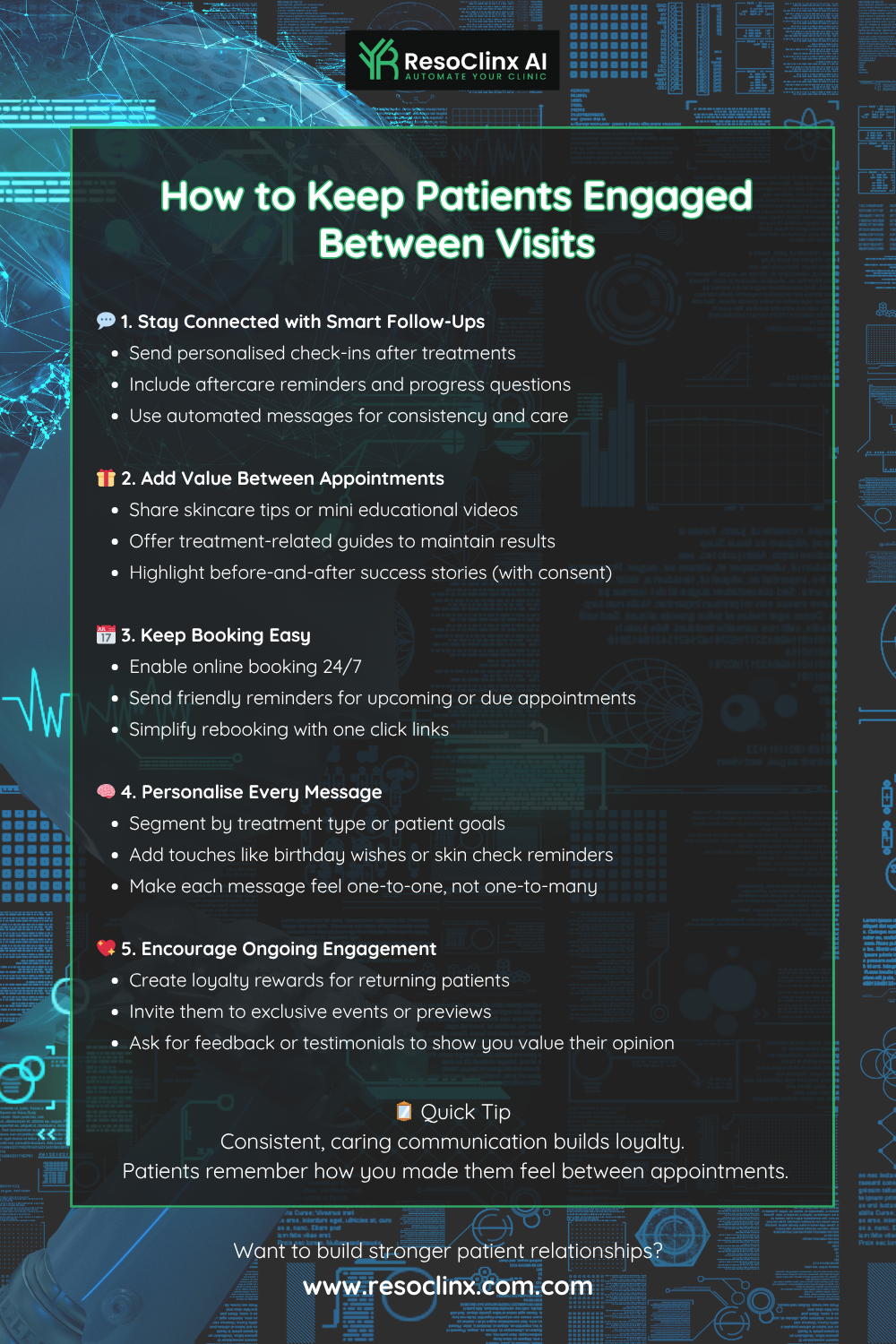 Keeping patients connected and invested in your practice between their appointments is just as important as the treatments themselves. It’s about building a relationship that lasts, making them feel valued and remembered long after they’ve left your clinic.