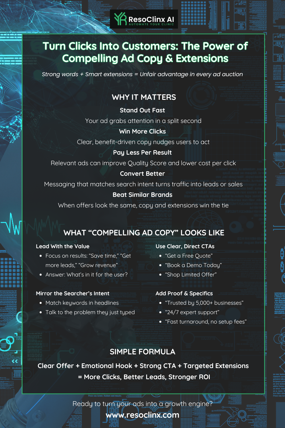 Your ad copy should speak directly to patient motivations and concerns, not just list features. Rather than simply naming the procedure, aim to answer the question: “Why should I trust this clinic with my treatment?”