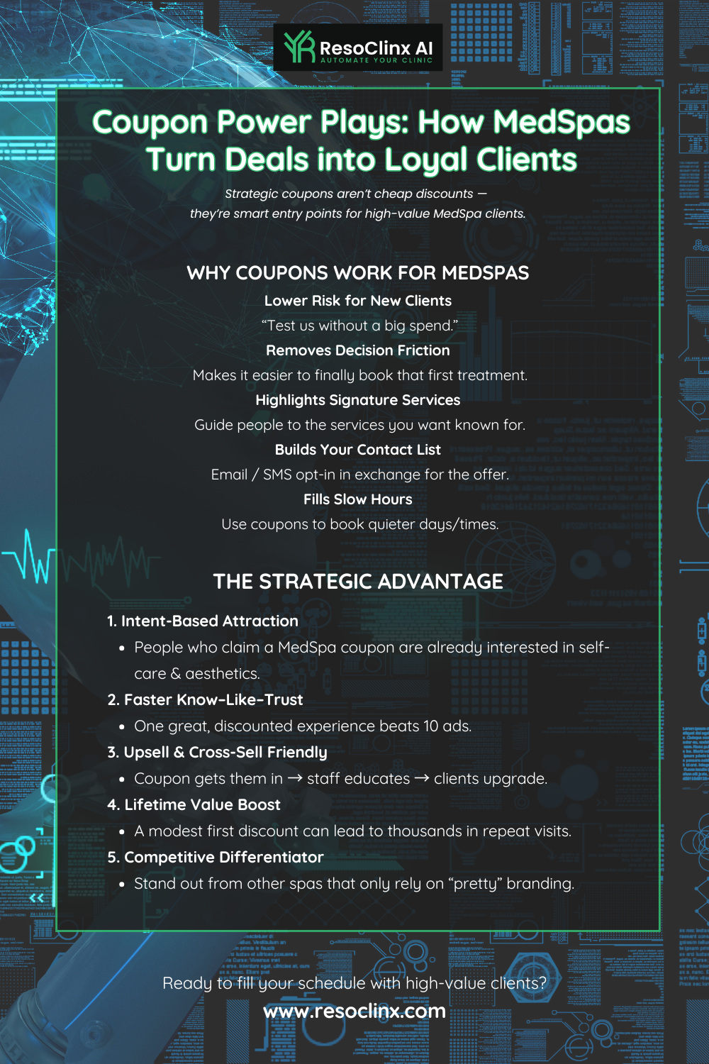 - Coupons are a proven way to attract new clients to your medspa, but they need to be planned carefully and aligned with your overall strategy.