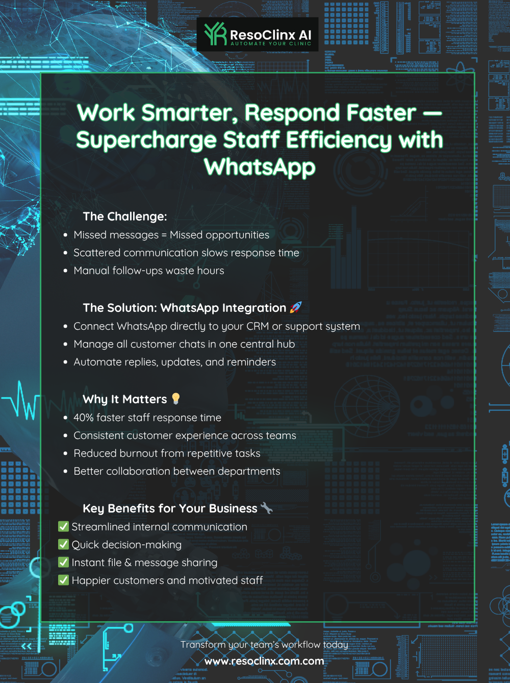 Integrating WhatsApp into your clinic’s communication system isn’t just about faster messaging — it’s about creating smoother, more efficient patient interactions.